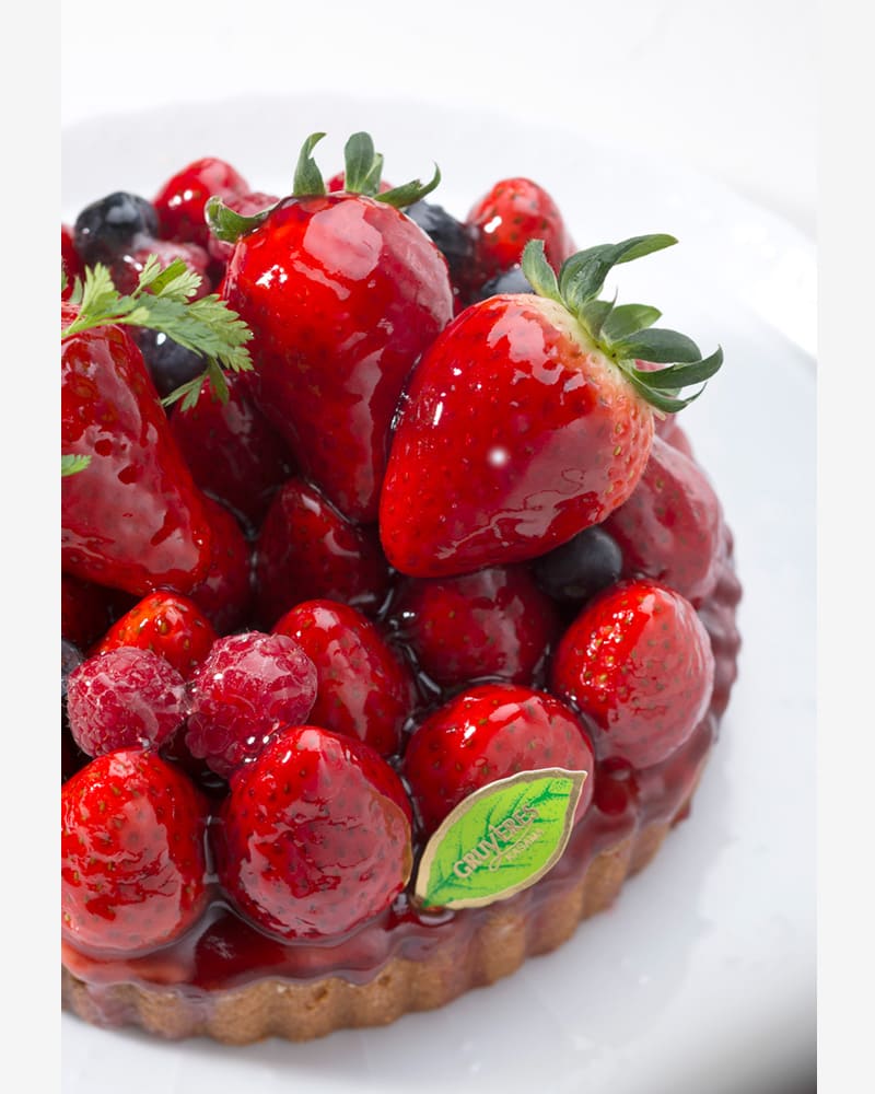 タルト生地の上にいちごを敷き詰めたタルトケーキです。丁寧に焼き上げたタルト生地も自慢の一品。グリュイエールのいちごは、全て地元笠間産のフレッシュなものを使用しておりますので、いちごの旬の時期には、格別な美味しさを味わえます。